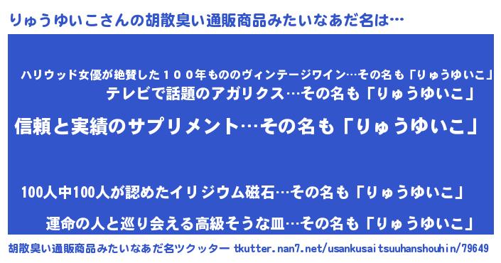 | 意味不明あだ名 | 『とにかく怪しいりゅうゆいこ』 |