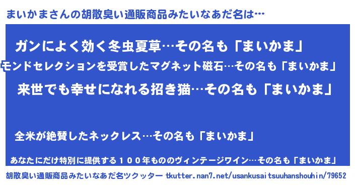 | ヘコむあだ名 | 『まいかま(笑)』『まいっちょ』 |