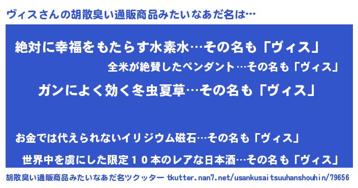 | 意味不明あだ名 | 『自称ヴィス』『永久保存ヴィス』 |