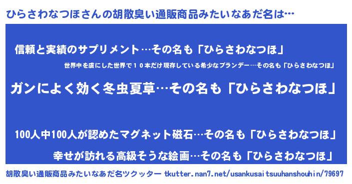 | 伝説のあだ名 | 『孤高の遊び人ひらさわなつほ』 |