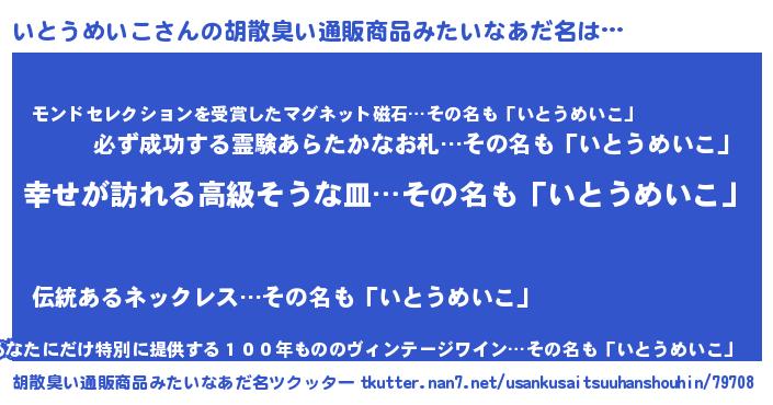 | 女子向けラノベタイトル風あだ名 | 『いとうめいこの雑貨屋さん』 |