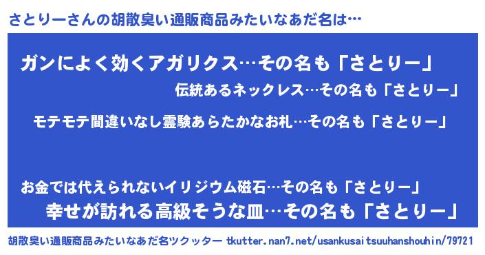 | 男性向けラノベタイトル風あだ名 | 『さとりーの憂鬱』 |