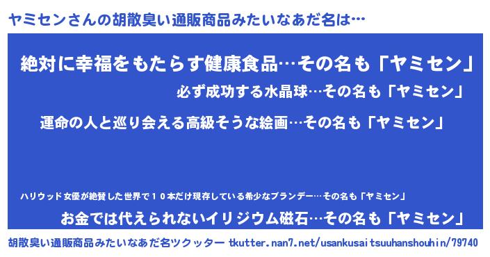 | ヘコむあだ名 | 『酢こんぶ』『ヤミセン(遠い目)』 |