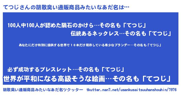 | 意味不明あだ名 | 『住所不定無職てつじ(71歳)』 |