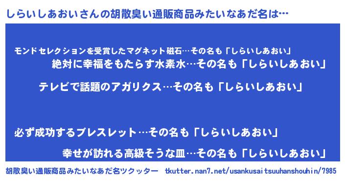 | 意味不明あだ名 | 『自称しらいしあおい』 |