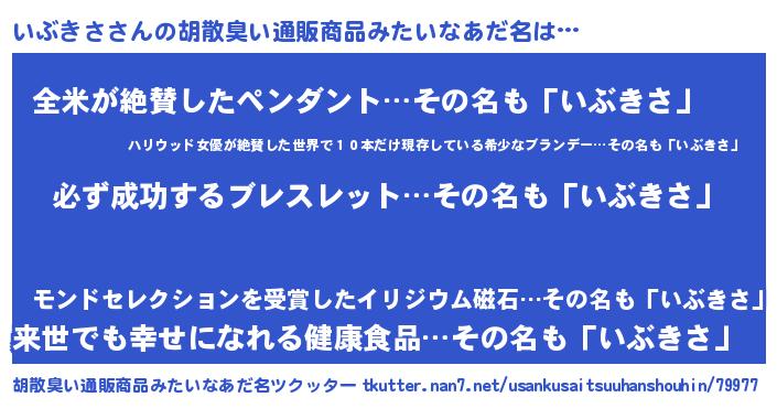 | 男性向けラノベタイトル風あだ名 | 『イブキサスレイヤー』 |