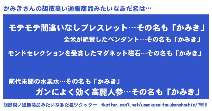 | 意味不明あだ名 | 『眠気覚ましガムかみき味』『自称かみき』 |