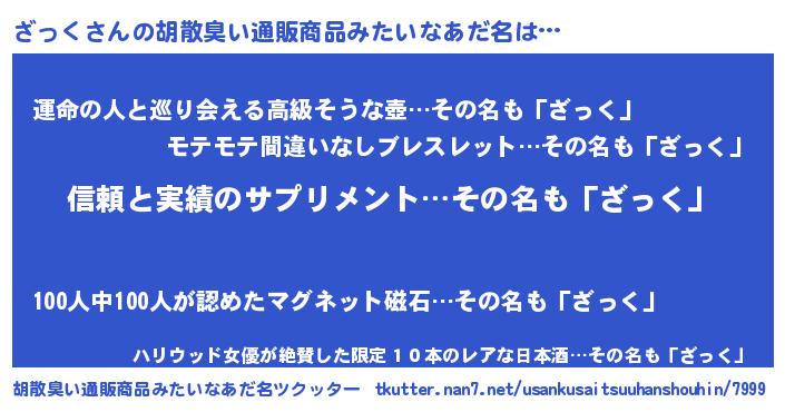| ヘコむあだ名 | 『ざっを』『酢こんぶ』『ざっにゅー』 |