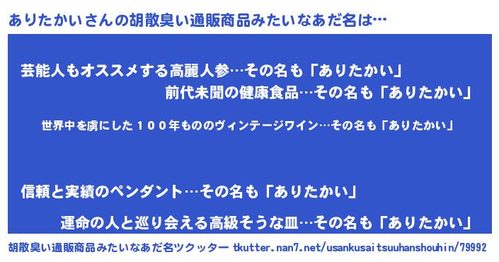 | 欧米人風あだ名 | 『ダレノガレありたかい』 |