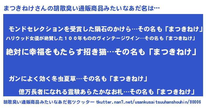 | 伝説のあだ名 | 『聞きしに勝る吟遊詩人まつきねけ』 |