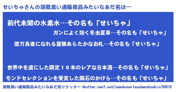 | 意味不明あだ名 | 『ペロリンせいちゃ』『永久保存せいちゃ』 |