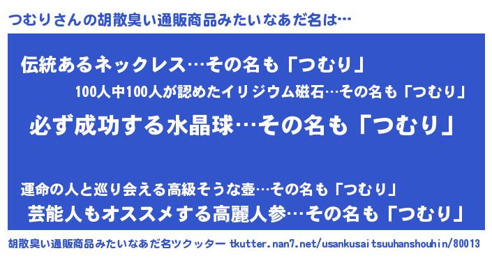 | ヘコむあだ名 | 『つむにゅー』『つむっぺ』 |