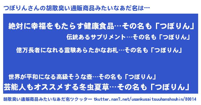 | ヒーロー風カッコイイあだ名 | 『スーパーツボリン』『ネオツボリン』 |