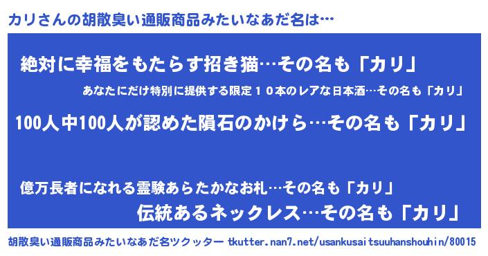 | ヘコむあだ名 | 『カリ(苦笑)』『カリを』『カリもー』 |