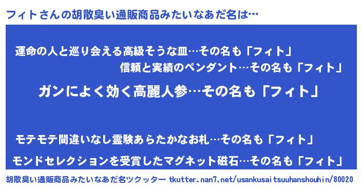 | 意味不明あだ名 | 『自称フィト』『フィトフォーエバー』 |