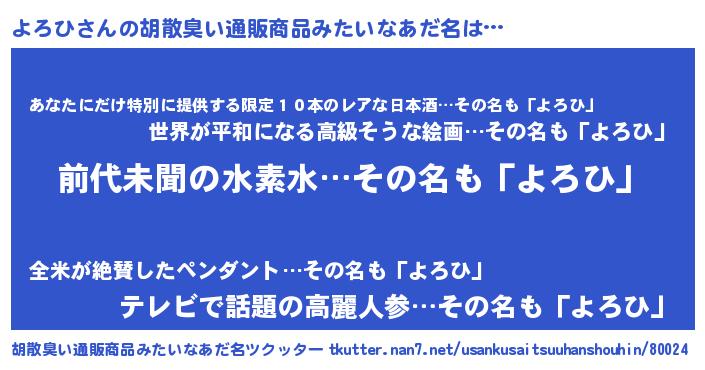 | ピコ太郎風あだ名 | 『ピコヨ郎』『ピヨ史郎』『ヨロ三郎』 |