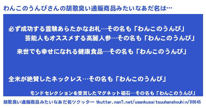 | 欧米人風あだ名 | 『ダルビッシュわんこのうんぴ』 |