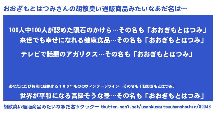 | 意味不明あだ名 | 『自称おおぎもとはつみ』 |