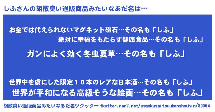| ヒーロー風カッコイイあだ名 | 『ウルトラ戦士シフ』『愛の使者しふ』 |