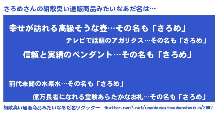 | 意味不明あだ名 | 『とにかく怪しいさろめ』『自称さろめ』 |