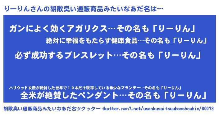 | 意味不明あだ名 | 『ペロリンりーりん』『自称りーりん』 |