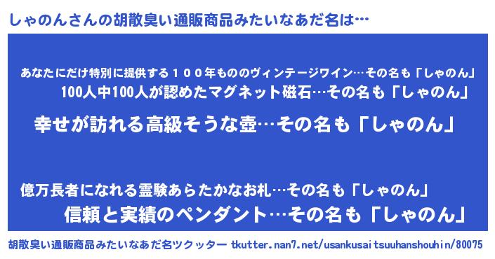 | 意味不明あだ名 | 『しゃのんフォーエバー』 |