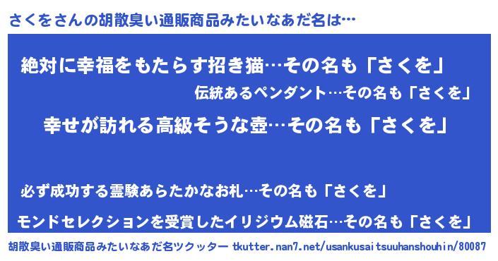 | ヘコむあだ名 | 『つくし』『さくを(小並感)』 |