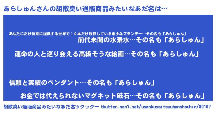 | 意味不明あだ名 | 『あらしゅんフォーエバー』 |