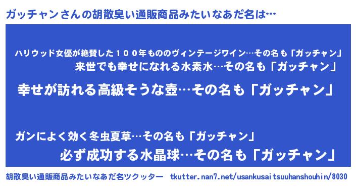 | 意味不明あだ名 | 『ガッチャンフォーエバー』 |
