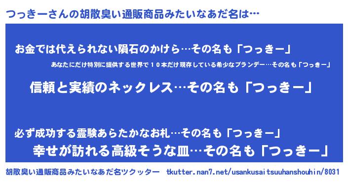 | 意味不明あだ名 | 『とにかく怪しいつっきー』 |