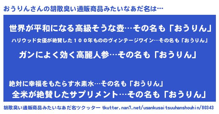 | 意味不明あだ名 | 『自称おうりん』『おうりんフォーエバー』 |