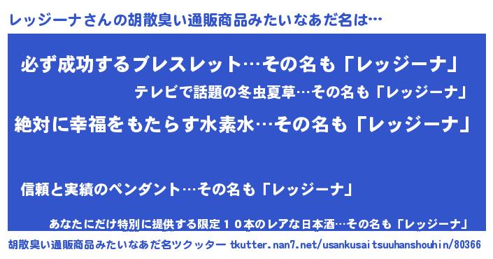 | 意味不明あだ名 | 『永久保存レッジーナ』『自称レッジーナ』 |