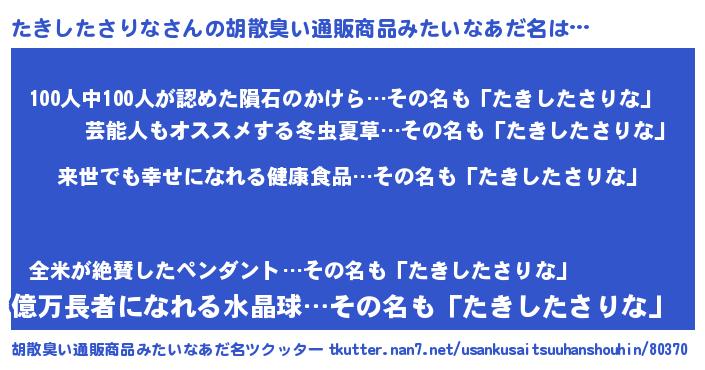たきしたさりなさんの胡散臭い通販商品みたいなあだ名をツクッター!