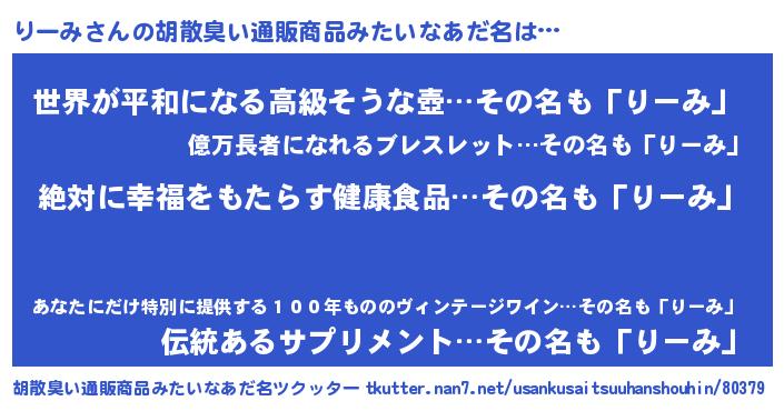 | 意味不明あだ名 | 『永久保存りーみ』『りーみフォーエバー』 |