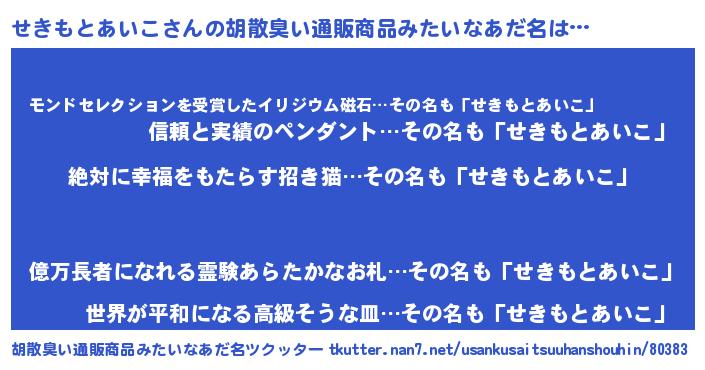 | 意味不明あだ名 | 『永久保存せきもとあいこ』 |