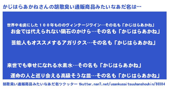 | 意味不明あだ名 | 『自称かじはらあかね』 |
