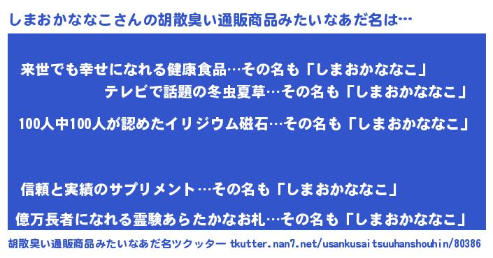 | ヘコむあだ名 | 『しまおかななこ(笑)』『しまもー』 |