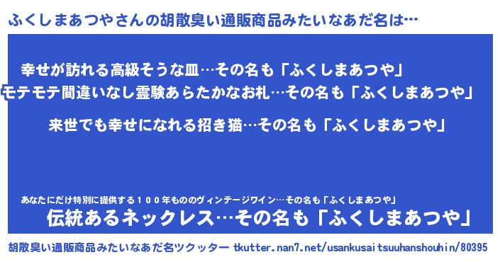 | 意味不明あだ名 | 『永久保存ふくしまあつや』 |