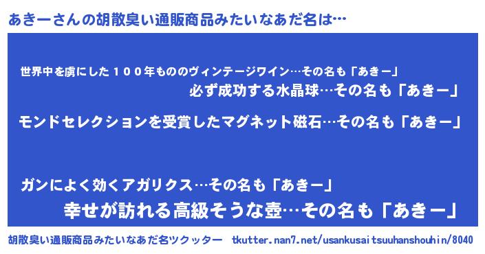 | 意味不明あだ名 | 『眠気覚ましガムあきー味』 |