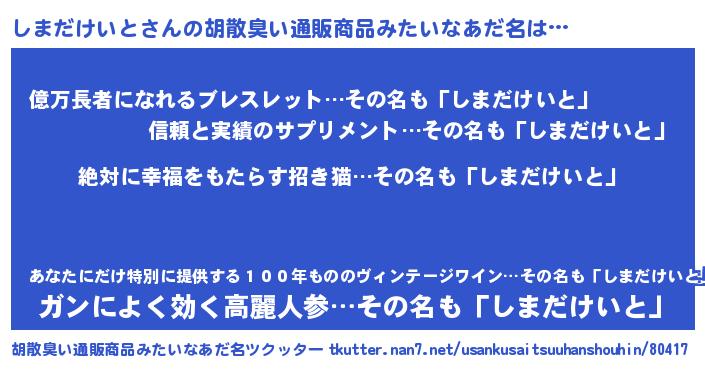 | 意味不明あだ名 | 『永久保存しまだけいと』 |