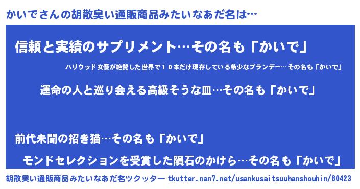 | 肩書あだ名 | 『かいで中将』『かいで総理大臣』 |