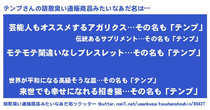 | ヘコむあだ名 | 『テンにー』『テンプ(遠い目)』 |