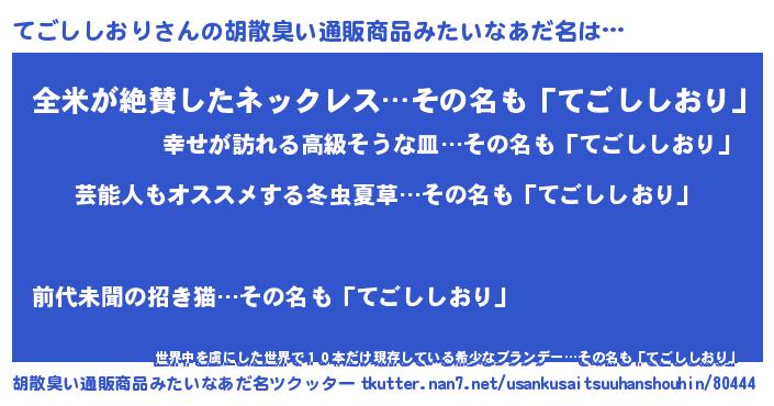 | 恥ずかしいあだ名 | 『テゴシシオリデラックス』『てごっちょ』 |