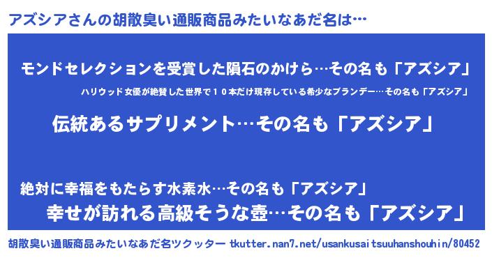 | 意味不明あだ名 | 『とにかく怪しいアズシア』 |