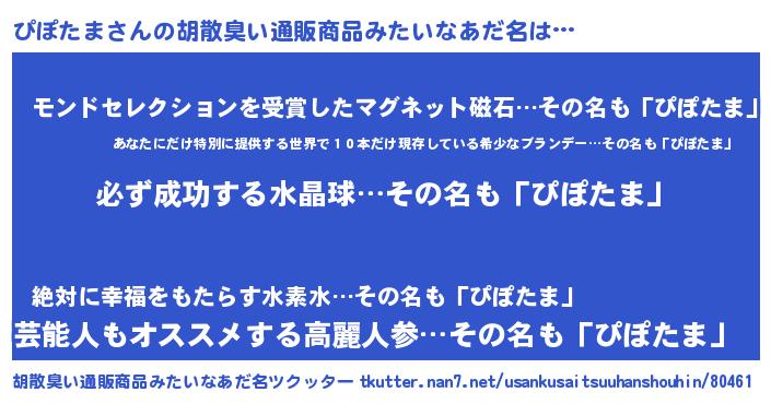 | ヘコむあだ名 | 『ぴぽにゅー』『ぴぽたま(遠い目)』 |