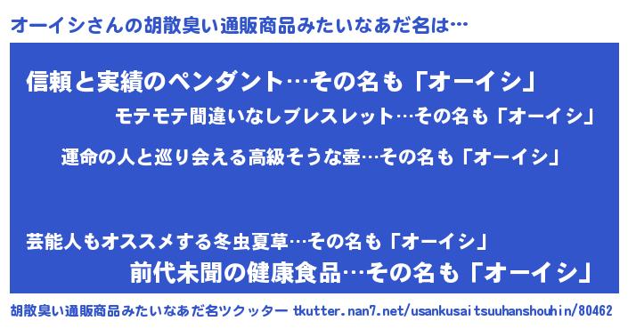 | 欧米人風あだ名 | 『オーイシクリステル』 |