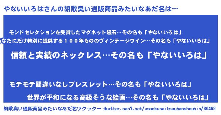 | ポケモン風あだ名 | 『ヒヤナイイロハ』『ヤナゴンZ』 |