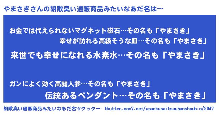 | 意味不明あだ名 | 『永久保存やまさき』『自称やまさき』 |