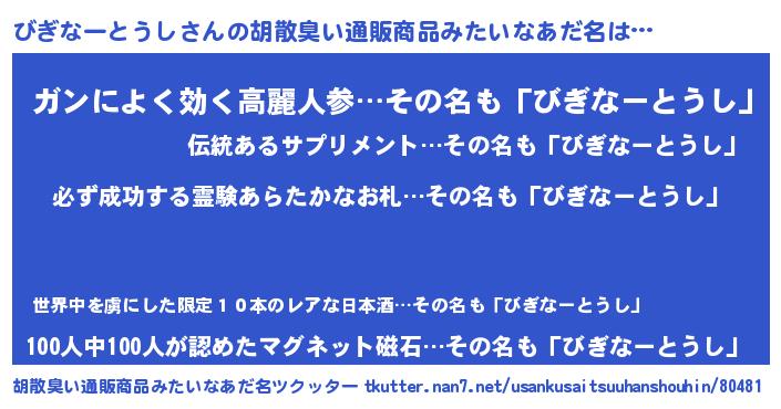 | 伝説のあだ名 | 『伝説のスナイパーびぎなーとうし』 |