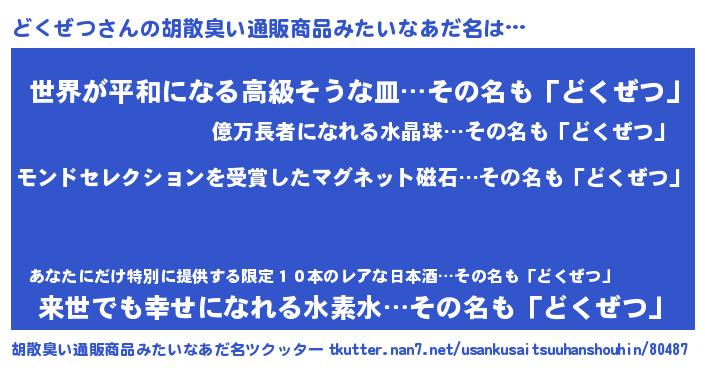 | ヒーロー風カッコイイあだ名 | 『天空の使者どくぜつ』『ネオドクゼツ』 |